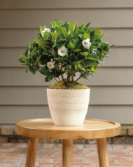 Generation to generation, gardenias are every home gardener’s tried and true go-to shrubbery essential. Airy white flowers dot dense, shiny evergreen leaves during their blooming season, and their sweet peaches & cream fragrance drifts through the breeze as the buds open.