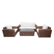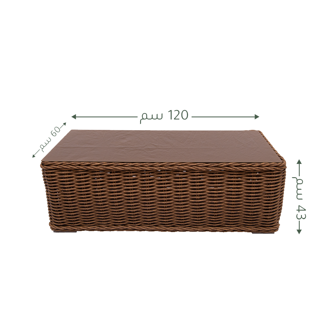 مجموعة فاخرة من جلسات خارجية للمنازل! تصميم ريفي بلون بني دافئ، نسيج راتان صناعي سهل التنظيف ومقاوم للصدأ والتغيرات المناخية الصعبة. تتكون المجموعة من 5 قطع: كرسي مقعدين. كرسي مفرد عدد 2. طاولة مستطيلة بوجه زجاجي. وسائد قماشية بلون أبيض.
